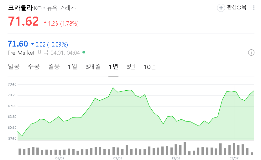 투자 이유: 코카콜라는 전 세계적으로 인지도가 높은 브랜드이며, 꾸준한 배당금을 지급하는 대표적인 안정적 종목이다.