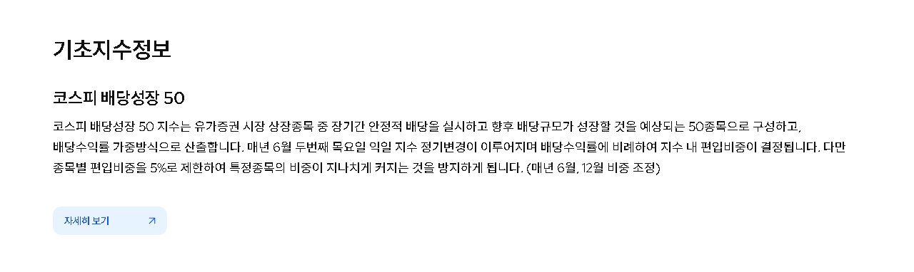 - 특징: 대형주 중심, 안정적인 배당 수익